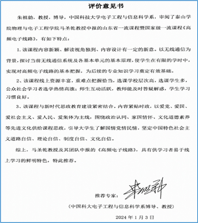 国一流课程 | 泰山学院物理与电子工程学院《高频电子线路》