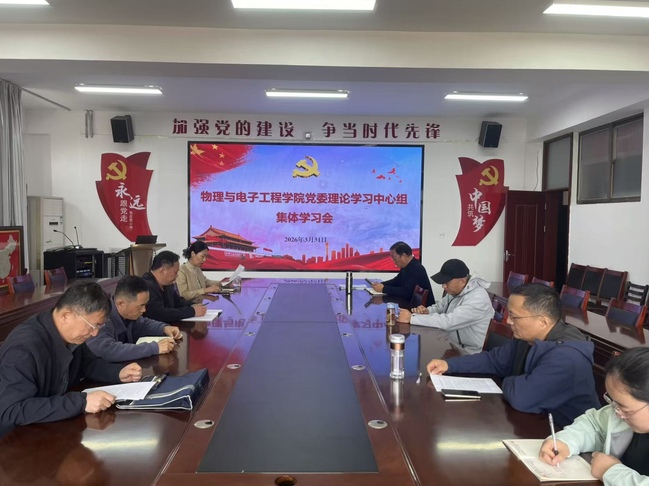 3月30日上午,物理与电子工程学院在二号综合楼B3015会议室召开党委理论学习中心组专题学习会,深入学习习近平总书记重要讲话和全国两会精神。学院党委理论学习中心组成员参加研讨,正处级干部、教工党支部书记列席,会议由学院党委主要负责人主持。