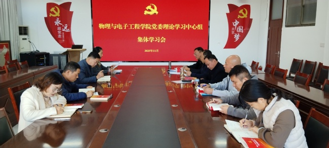 11月25日上午,物理与电子工程学院在二号综合楼B3015会议室召开第11次党委理论学习中心组专题学习会,深入学习领会党的二十届四中全会精神。学院党委理论学习中心组成员参加学习研讨,学院正处级干部、各党支部书记列席,会议由学院党委主要负责人主持。